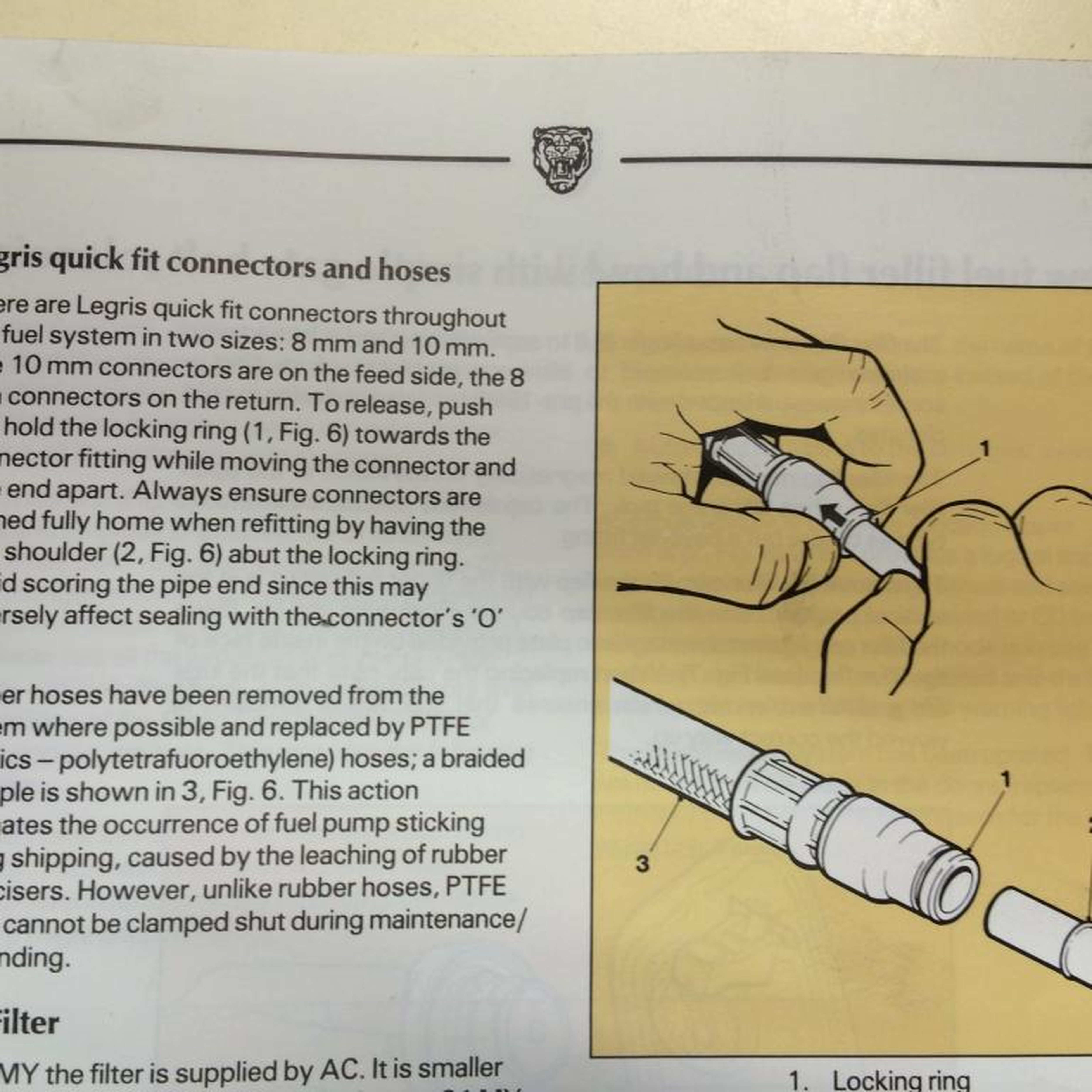 Är i behov av att byta bränslerören på min XJ40 (1992) men har inte kunnat bekräfta vilken dimension dessa ska vara. Alla originaldelar är sedan länge slutsålda hos JCP. Om jag inte misstar mig har både äldre och nyare modeller annorlunda kopplingar för bränslefiltret, det här är varianten med dubbel hona på filtret (C2C35417). Rören är ganska illa däran och realistiskt lär hela längden behöva bytas på båda hållen. Mätningar på mina anfrätta original ger inte något tydligt svar. Hittade bild ur Jaguars verkstadshandbok som säger att Legris-kopplingarna är 10 respektive 8 mm, för returen. Spontant känns det osannolikt att rören skulle vara mm, tänker att de måtten kanske syftar på slangen? (Jag har tyvärr inte själv tillgång till boken, bilden är från annat forum). Hoppas att någon kan leda mig i rätt riktning, det är knappast ett unikt problem ^^