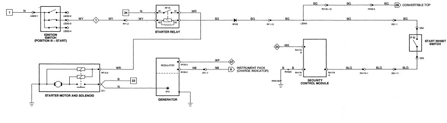 HejDet är rätt kabel den röd-vita går direkt till startmotorn. Får den plus så skall startmotorn gå till, gör den inte det är felet i den.