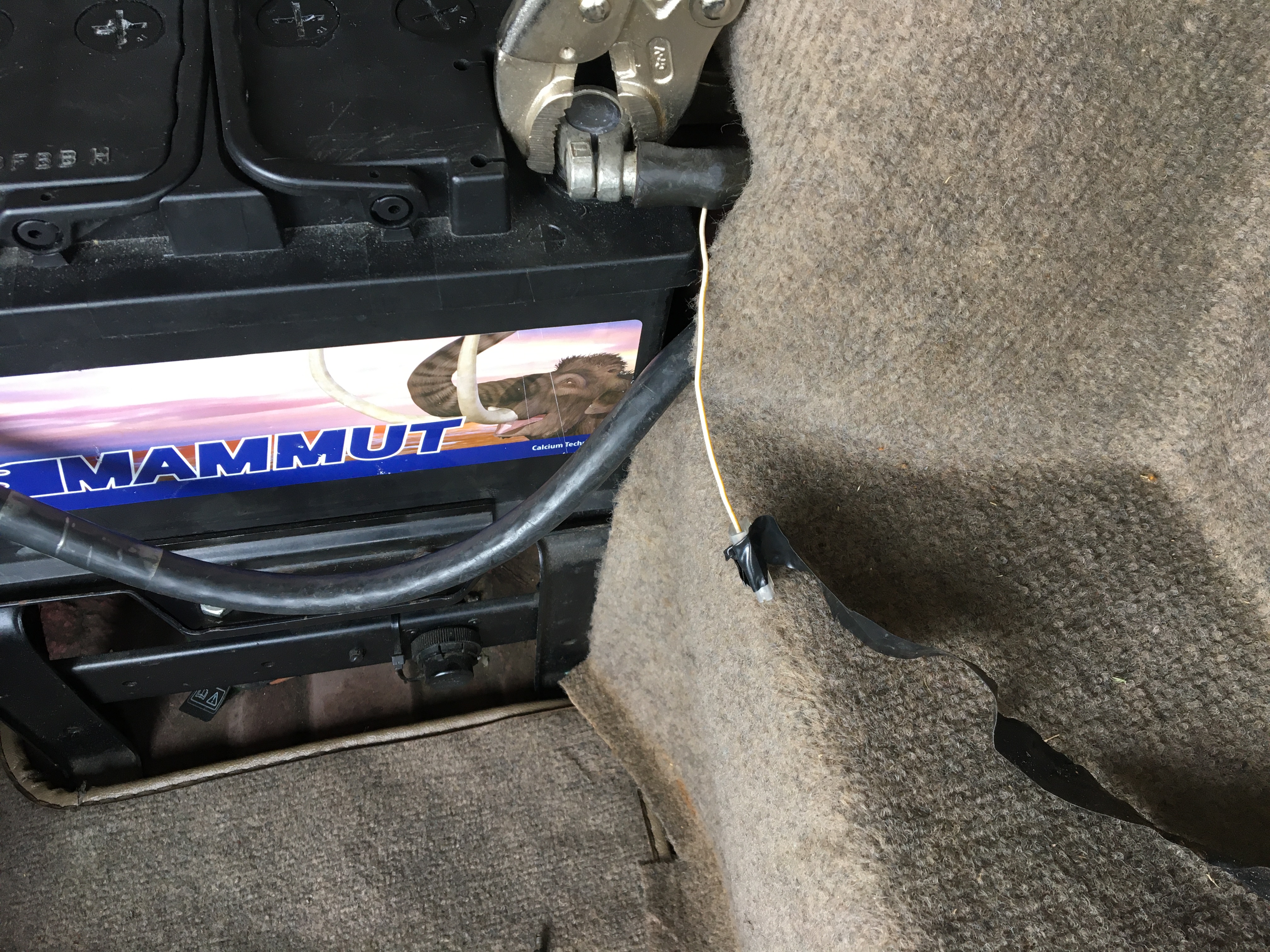 Ett annat problem är att jag råkade dra av skruv som håller fast pluspolskabeln till batteriet. Har löst det temporärt med svetstång. Vad är det för liten sladd som sitter fast i pluspolskabeln?